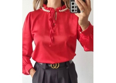 Enobarvna bluza Tinka z s perlicami.